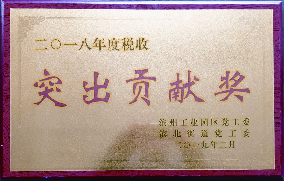 • ■2019-02-18 我公司榮獲濱州工業(yè)園區(qū)“稅收突出貢獻(xiàn)獎(jiǎng)”