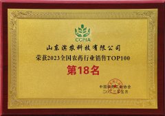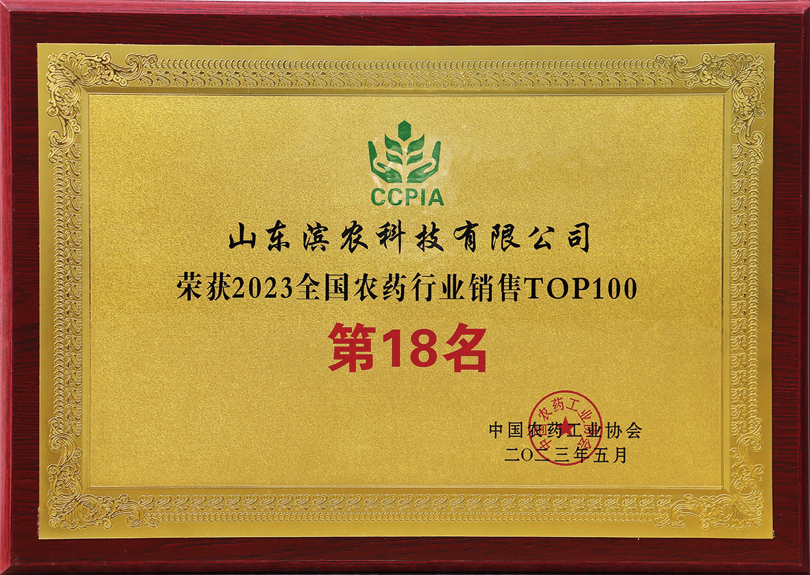 • ■2023-06-13 濱農科技榮獲 “2023全國農藥行業銷售TOP100”第18名