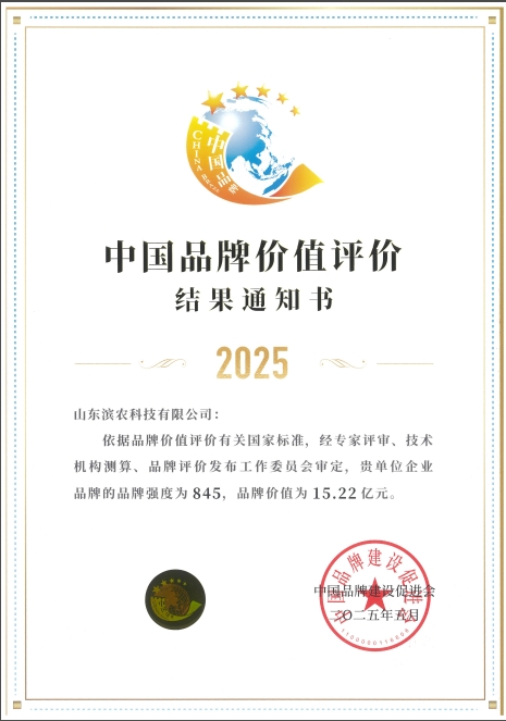 5月10日,“2025中國品牌價值評價信息”在浙江德清正式發布。此活動由中國品牌建設促進會、中國資產評估協會主辦,新華社品牌工作辦公室、《中國品牌》雜志社等單位共同承辦。經專業評估,濱農科技在能源化工領域品牌強度達845,品牌價值達15.22 億元。濱農科技已連續六年登榜,且品牌價值逐年遞增,凸顯了品牌建設的卓越成果與行業競爭力。我公司將繼續加大研發投入,專注技術創新與產品質量提升,積極開拓海內外市場,憑借優質產品服務贏得客戶信賴,推動農化行業朝著綠色、高效、可持續方向發展。