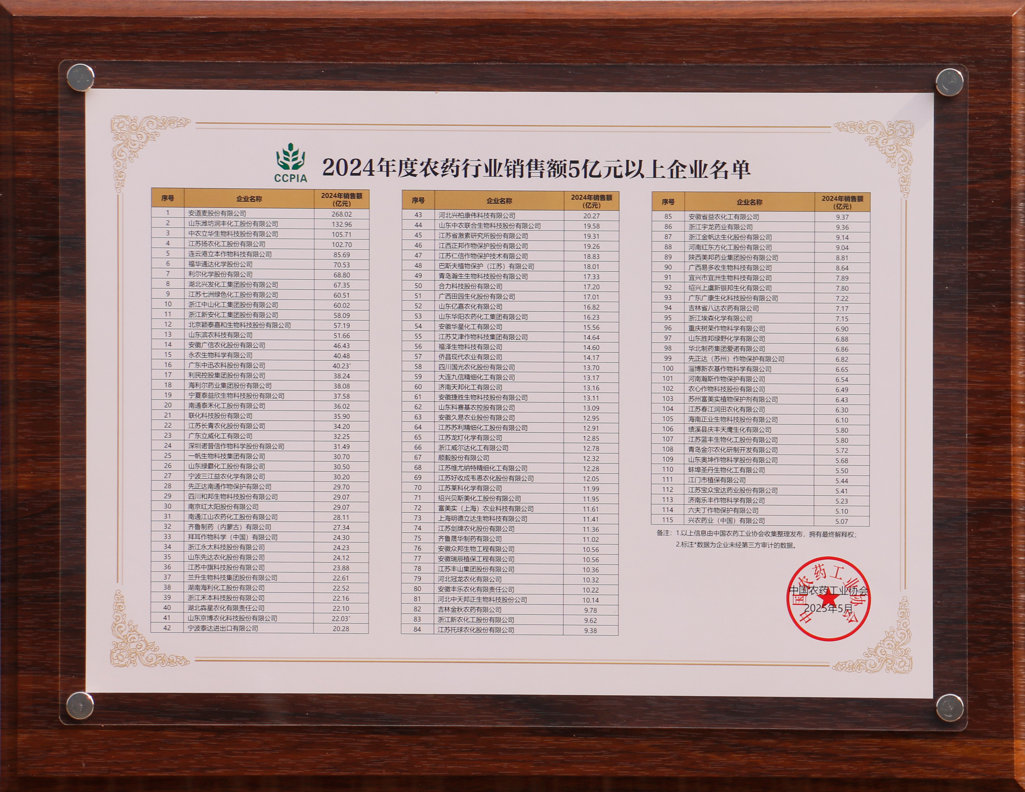• ■2025-06-10 濱農科技位居2024年度中國農藥行業銷售額5億元以上企業第13名