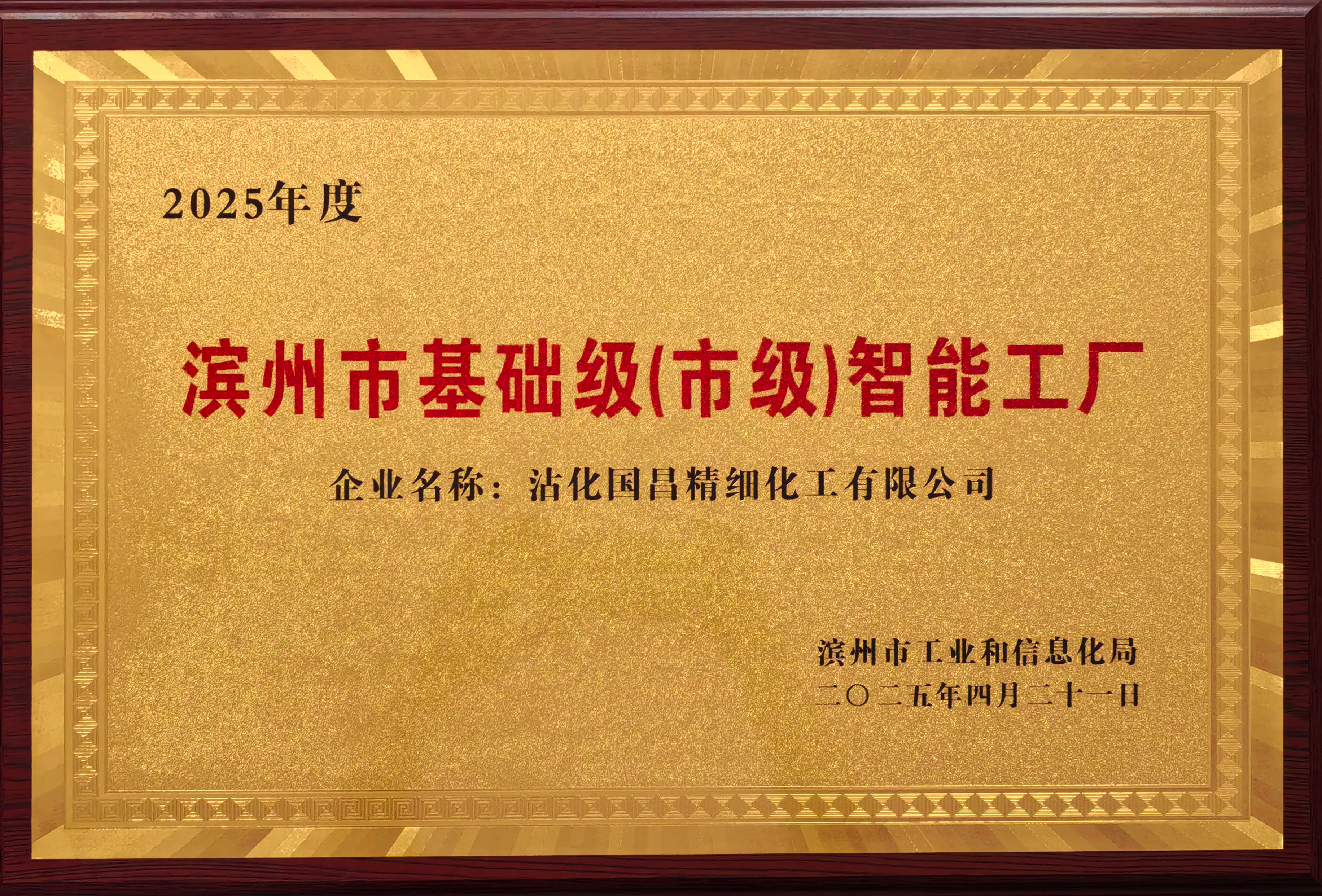 4月21日,沾化國昌精細化工獲評2025年度濱州市基礎級(市級)智能工廠。