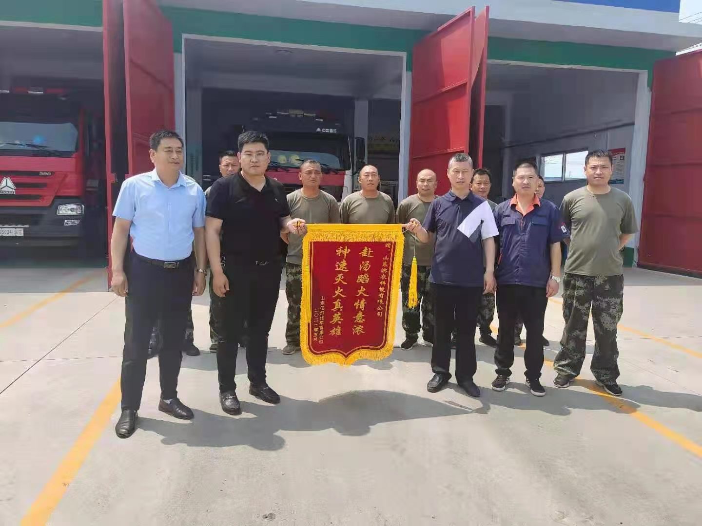 山東億爾化學為我公司消防隊送來錦旗發(fā)布時間:2021-07-13 14:516月 2日上午,我公司安全總監(jiān)王艷彬、護衛(wèi)隊主任顏丙凱代表公司收到了山東億爾化學公司贈送的印有“赴湯蹈火情意濃,神速滅火真英雄”的一面錦旗,億爾化學安全負責人對在5月29日火災撲救中快速出警、處置正確、不畏危險、英勇作戰(zhàn)的濱農(nóng)科技消防隊指戰(zhàn)員表示衷心的感謝。王總和顏主任表示,一旦有險情發(fā)生,快速實現(xiàn)應急救援和全力保護園區(qū)消防安全是濱農(nóng)消防隊應盡的職責,錦旗是對我們工作的肯定,也是對濱農(nóng)消防隊莫大的鼓舞,今后將一如既往地為濱北工業(yè)園區(qū)創(chuàng)造平安、和諧、穩(wěn)定的安全環(huán)境。 ![]() |