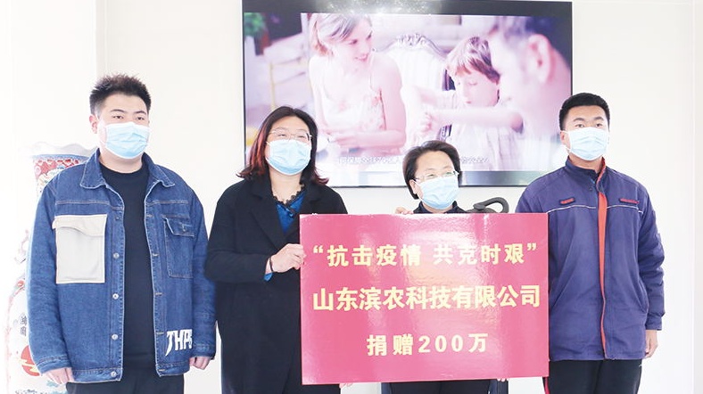 3月18日,濱農科技子公司沾化國昌精細化工有限公司向沾化區濱海鎮政府捐贈5000L次氯酸鈉消毒液,向沾化區慈善總會捐資5萬元;3月19日,濱農科技向濱城區慈善總會捐資200萬元,以實際行動為建設富強濱州、六個濱城踐行了企業公民之責。
