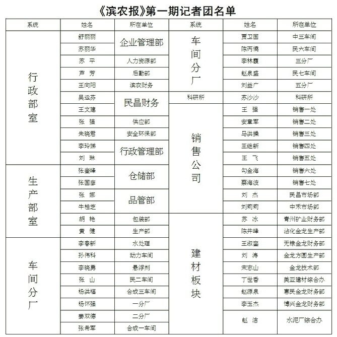 ◆《濱農(nóng)報(bào)》第一期記者團(tuán)宣告成立